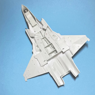 The forward tip of the nose, wing tips and wing roots were joined together using cyanoacrylate cement to facilitate a strong and rapid setting joint lines. Wide gaps appeared along the intake strake joint lines, these were eliminated by pressing the joints together until the cyanoacrylate cement bonded the two halves together. Aft fuselage, wing leading edge and trailing edge remaining joint lines were bonded together using Tamiya quick setting liquid cement.
